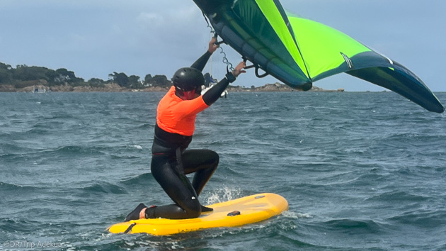 Plus exactement à Carantec, une charmante station balnéaire du Finistère où elle nous propose de progresser en wing foil dans de belles conditions. Le spot de Carantec donne sur la magnifique baie de Morlaix. En fonction des vents et de la marée, les cours se déroulent du bord ou depuis un bateau.